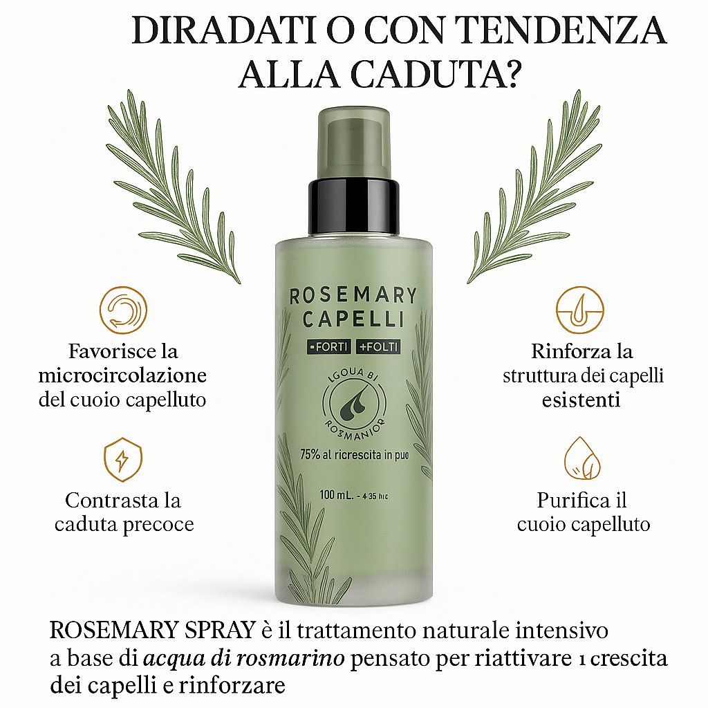 🌿 ROSEMARY SPRAY è la soluzione efficace per contrastare la caduta e stimolare la ricrescita, restituendo forza, spessore e vitalità alla tua chioma.